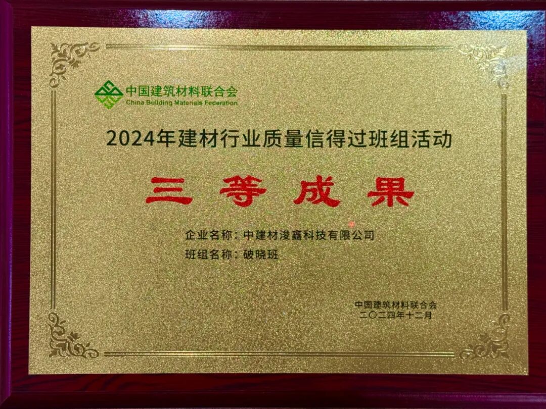 质量强企结硕果!中建材浚鑫斩获多项质量管理大奖