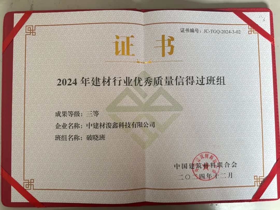 四个班组获评“建材行业优秀质量信得过”,质量建设再上新台阶