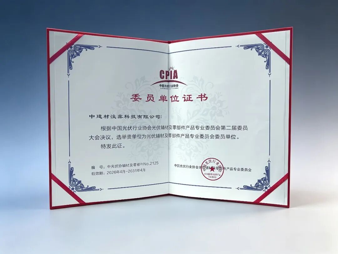 光伏担当 共筑生态 | 中建材浚鑫当选中国光伏行业协会辅材专委会委员单位 业内新闻 发布时间 2026-04-24 NEWSJETION SOLAR2026年4月21日至22日,中国光伏行业协会光伏辅材及零部件产品专业委员会第二届委员大会第一次会议在宁夏银川召开。大会汇聚光伏产业链上下游优质企业,共话产业高质量发展路径,共促产品质量提升与技术创新升级。中建材浚鑫副总经理郭万武受邀出席大会,见证公司成功当选专委会委员单位。本次会议以推动光伏产业高质量发展为核心,围绕行业自律、标准体系完善、辅材与零部件技术升级等关键议题展开交流,为我国光伏产业规范化、可持续发展凝聚行业共识、搭建协同平台。会议期间,与会代表共同参观了CPVT银川实证基地,并就光伏辅材及组件的质量提升展开深入研讨。行业专家结合实证数据,围绕产品质量控制、电站建设等话题分享了技术见解,为行业发展提供了有益参考。作为全球光伏组件领域的重要参与者,中建材浚鑫此次入选,是行业与权威机构对公司技术能力、产品品质及产业贡献的充分认可与肯定。未来,公司将积极履行委员单位职责,深度参与专委会各项工作,在行业标准建设、技术交流与合作、产品质量提升等方面主动作为,为推动光伏辅材及零部件领域规范化、高质量发展贡献力量。 上一篇:没有了 下一篇:“中国建材—奇瑞汽车”产品与技术交流主题日成功举办… 返回列表