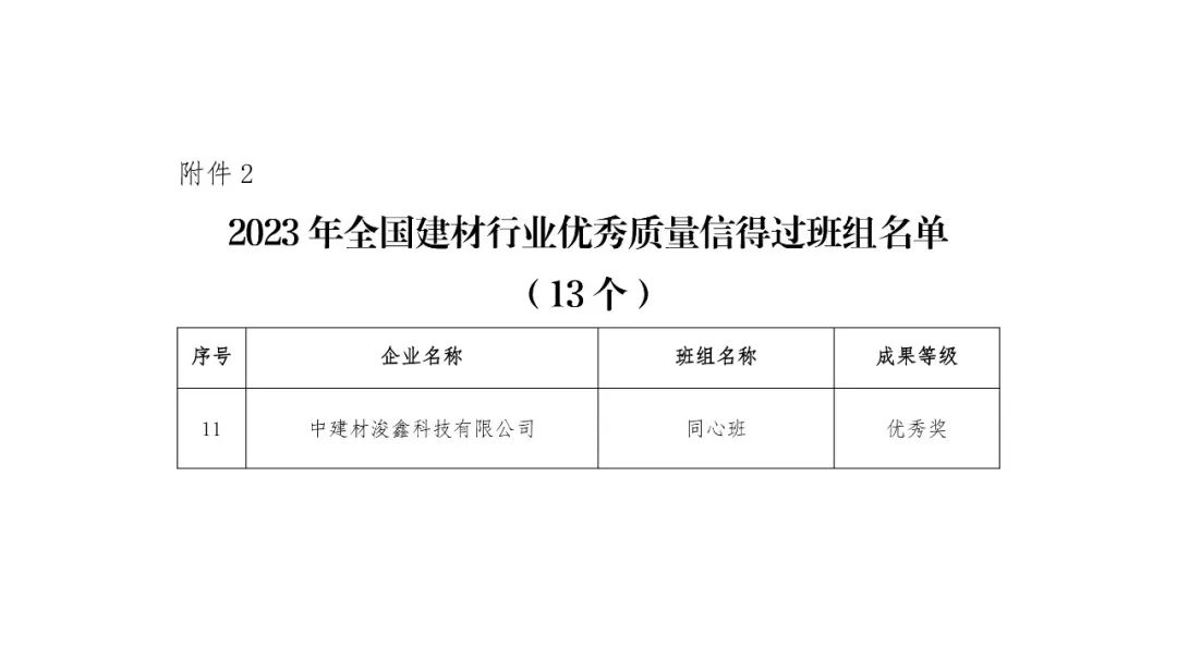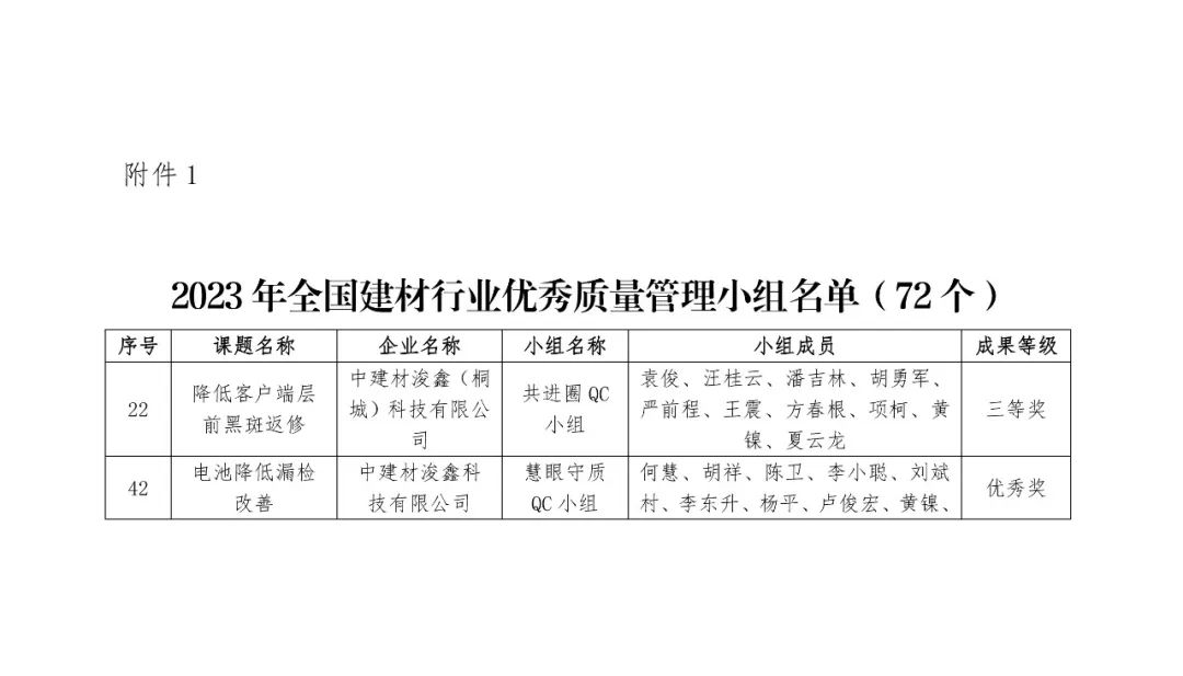 中建材浚鑫2023年度质量管理活动勇夺全国行业标杆